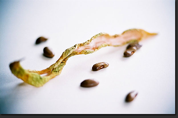 収穫し忘れていたサヤインゲンに立派に成熟した実が7つぶ入っていました。皮がしわしわで豆がつるつるおもしろ(^_^)d古いレンズですが色の偏りは見られません。保存状態が抜群だったのでしょうか格安のミッケ物です。