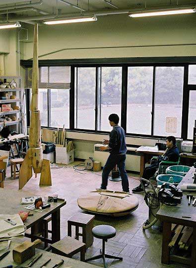 「木彫を始めたきっかけは?」と質問したところ、「クジにはずれたから」という意外な答えが返ってきました。三木さんは本当は社会科の先生になりたかったそうです。でも、大学の専攻課程で社会科を希望する者が多すぎたため、クジ引きになり、見事にはずれたそうです。そこで目に留まったのが美術コースで、それまで絵を描いたことなど殆どなかったにもかかわらず「嫌いじゃないし、まっ、いいか」という軽いノリで入って、何となく木彫を始めたのがきっかけだそうです。ここでも《生き方としての空》が見え隠れしていました。