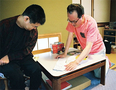 中に入ってまず見せていただいたのが、ホームページの作成用に少しずつデジタル化しているという作品集。愛機のパワーマックからスライドショーのように止めどなく流れていく作品を見ながら、絵を描き始めた頃から現在までの心の動きなんかを熱く語ってくれました。