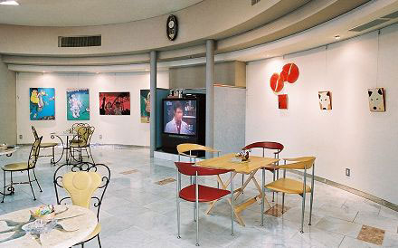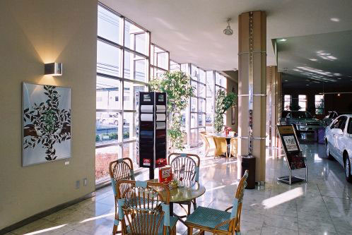 作品が展示されている南側の展示場と今回は車だけの北側の展示場の中間にある休憩ゾーン。土日祝日ともなればお客様で賑わうらしいが、平日はこの通り。ゆっくりと作品が見られます。