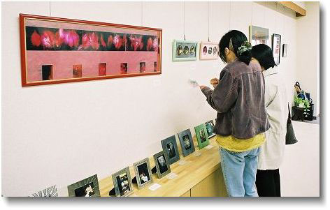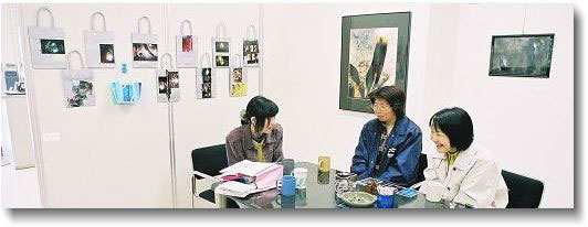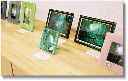 小品は1枚5000円〜10000円程度で販売されていました。そしてまた目に付くのは額の種類の豊富さです。これらの額は、サティやダイエーその他普通の雑貨屋さんなどで見つけてくるそうです。フィーリングに合う額があったらとりあえず買っておいて、その中から写真に合う物を選ぶ。だから、家には額屋さんができるぐらいいろんな額があると言ってました。多分、頭の中には額のデータベースが入ってるんでしょうね。