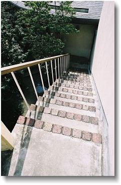 なんか少しオーバーに書き過ぎました。実は車椅子で階段を降りるのは上るよりも楽なのです。車椅子に乗っている者の状態にもよりますが、熟練者なら一人で降ろすことも可能なぐらいです。その方法は、登りと全く同じ。まず車椅子を思いっきりウイリーさせてそのままバックで一段ずつ降りていくわけです。一段降りるたびにガタンッガタンッと強い振動がお尻に響きますがそこはご愛敬。3人もいれば簡単に降りられるわけです。ただ上がるときにも書いたように、この方法が向かない人もいます。介助の方法は本人に確認してから行ってください。