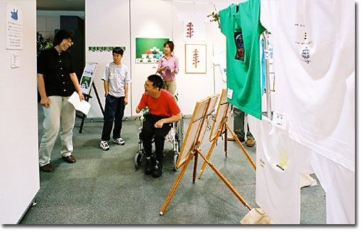 「まず今回の展覧会は、あくまで授産施設としての展覧会という位置づけで、Tシャツ商品化の足がかりとして、とにかく少しでも売り上げに繋げていきたかったんです。そのためには、一般のギャラリーで開催した方が福祉業界の人だけじゃなく、いろんな人に見ていただけると考え、交通の便利な所で、しかも経費があまりかからず販売できる所ということで、ここを選んだわけです」