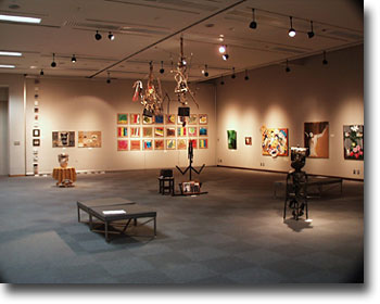 この『ごっついん阿波・森羅万象展』は、冒頭のタイトルでも紹介している通り、徳島県内のアーティスト有志が作品を持ち寄って作られた展覧会です。世話人であるサイトウシゲジさんが知り合いのアーティストに適当に出品の案内を送り、その知り合いがまた知り合いに知らせて、搬入日に集まった者だけが、その場で挨拶しあい作品を展示。そのため、その日にならなければどんな作品が何点集まるか分からないというなんとも変わったグループ展なのです。でも、この展覧会も今年で6回目(1回目目が「神々の遊ぶ庭阿波展」 2回目が「死と再生の阿波展」 3回目「ごっついん(GODS IN)阿波展」 4回目「マイ・アナザサイト展」 5回目「インヴォルブ展」 そして今回が「森羅万象展」)。「森羅万象展」としたのは、出品作品全ての内容に合致するものと考え、読みかえると「この世のすべてのもの」という意味になるからだそうです。