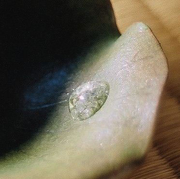 上の写真は自然の雫。後で西さんに聞いたところによると、透明のガラス玉は偶然出来たもので、他のすべての玉にはひびが入っているということでした。
