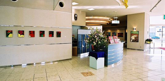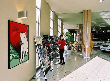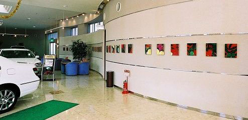 会場は、南前川町の「徳島トヨタアタラツインギャラリー」。簡単にいうと車の展示場に作品の展示スペースがあるわけです。徳島市内のほぼ中心部にこんな広い展示場を作るなんて、さすがトヨタやなぁ。スロープもきちんと完備され好感の持てる会場でした。