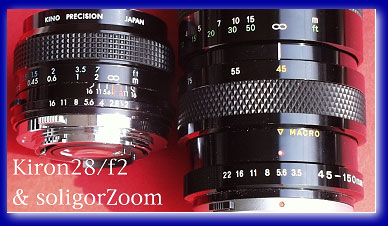 フィットワーク重視、ユニバーサルに対応できるSligor Zoom45-150mm/3,5とKiron28mm/f2、Soligor28mm/2,8の2セットです。このままキロン、アベノン、テフノン、ソリゴール、ヴィヴィターを収集しようかって、、ジョーダンでしょ。