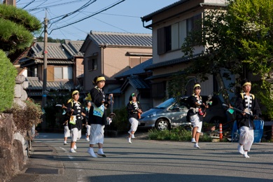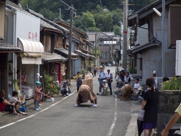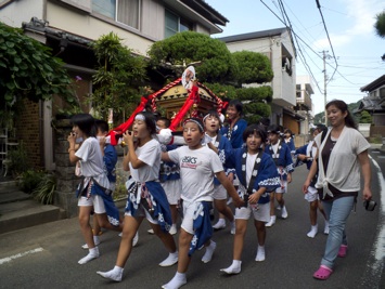 ↑↑↑暖かく見守る勝瑞さんですよ。右は町を行く子供御輿です。