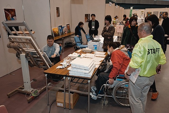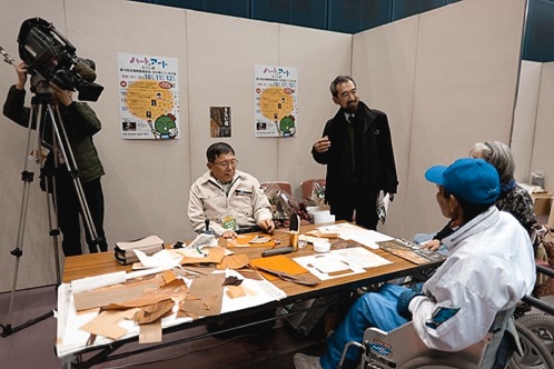 徳島市内のアスティとくしまで12月10-11-12日「第10回全国障害者芸術・文化祭とくしま大会(ハート&アートとくしま)」が開催されました。夢ギャラリーと関係します丸居哲雄さん、村上哲史さんが会場で制作を実演致しました。