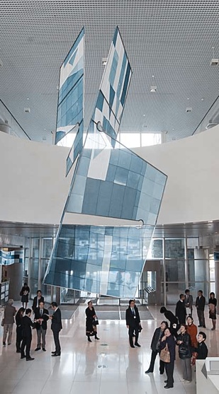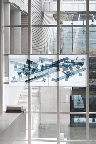 彫刻家河崎良行氏が藍染体験ワークショップに参加した子どもたちが染めた布、日ごろから藍染めに取り組んでいる子どもたちが染めた布、藍染体験施設を訪れた人たちが染めた布、それぞれが染めた布“千枚”を使って、創り出すインスタレーションをプロデュースされました。