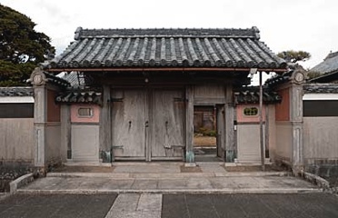 門と紋を並べました。 堂々とした「門」をくぐって入ります。右は二つ巴の紋ですね〜