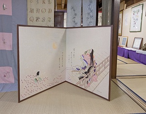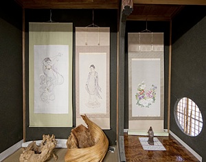 掛け軸左側から”飛天” “弥勒菩薩” 右端は生徒さん作品。