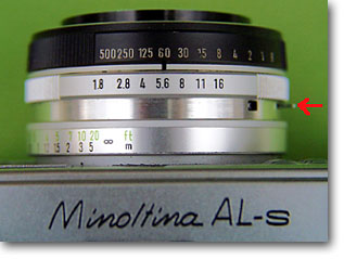 シャッターと絞りの並びは結構この上なくて選択が一目瞭然です。ハッセルとかマミヤRBの「お仕事カメラ」と同じ配置で便利です。オリンパスOM-1も鏡胴にシャッターリングをもってくるのならこのあたりまでやって欲しかったのですが、ミノルチナで実現出来ているのはそばにシャッタ−があるレンズシャッターだからでしょうね。