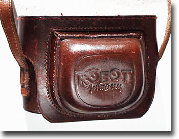 オリジナルの皮ケースですが頑丈な厚手の皮で年期が入っていて補修する事すら拒むような体裁です。しかしストラップを90度折り曲げてみたらポロリと折れてしまいまして経年変化でしょうか本体はともかくストラップは交換しないとカメラが危険です。手持ちのペンタックス製(結構高かった^^;;\6,800円)のブラウンレザータイプを縫い付けました。接合位置はやや低目で重心よりは上ですが割とおじぎし易く改良が必要と感じます。勿論速写ケースをパカリと開けると自然と重心は下に移って安定致します。